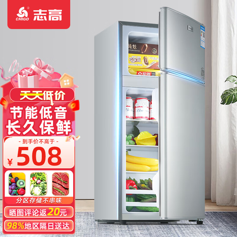 志高(CHIGO)冰箱小型家用 租房优选 冷藏冷冻双开门 迷你冰箱 节能保鲜低噪小冰箱 BCD-82A155D 银色价格:538.00元!