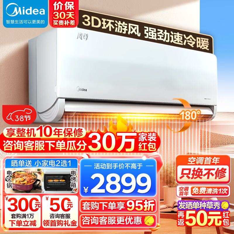 美的(Midea)空调 1.5匹 风尊 新一级能效变频冷暖 独立除湿 智能家电 壁挂式空调挂机 KFR-35GW/N8MXC1时尚版价格:2899.00元!