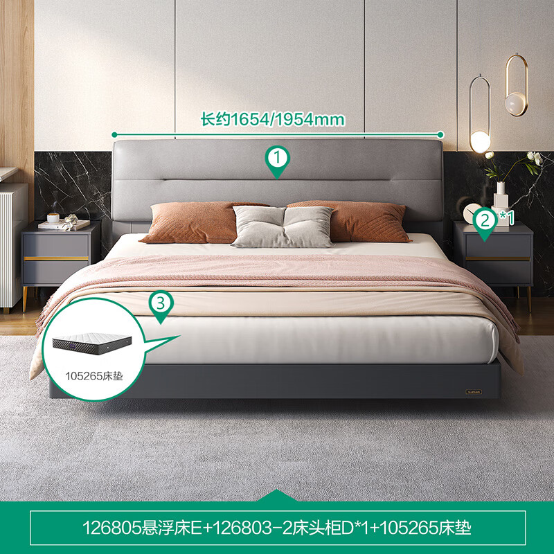 全友家居 主卧室轻奢软包床头板式床悬浮床1.5x2米双人床家具126805价格:2723.75元!