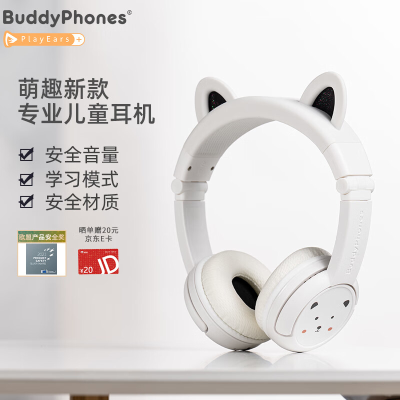 onanoff BuddyPhones儿童耳机萌趣耳朵头戴式 无线蓝牙网课学习 兼容苹果安卓系统 PlayEars+北极熊白色价格:529.00元!