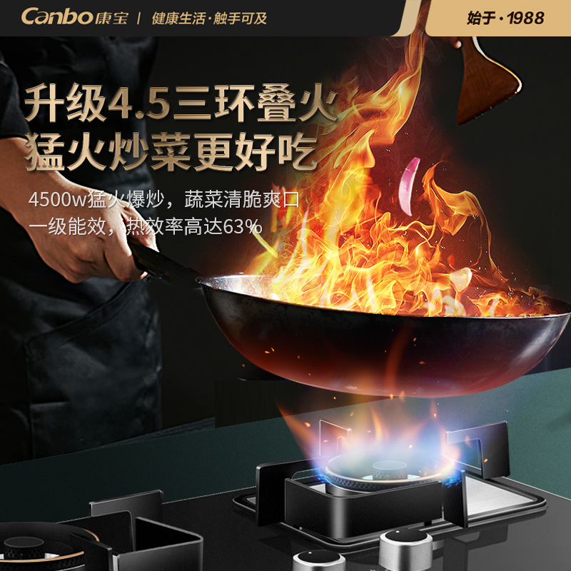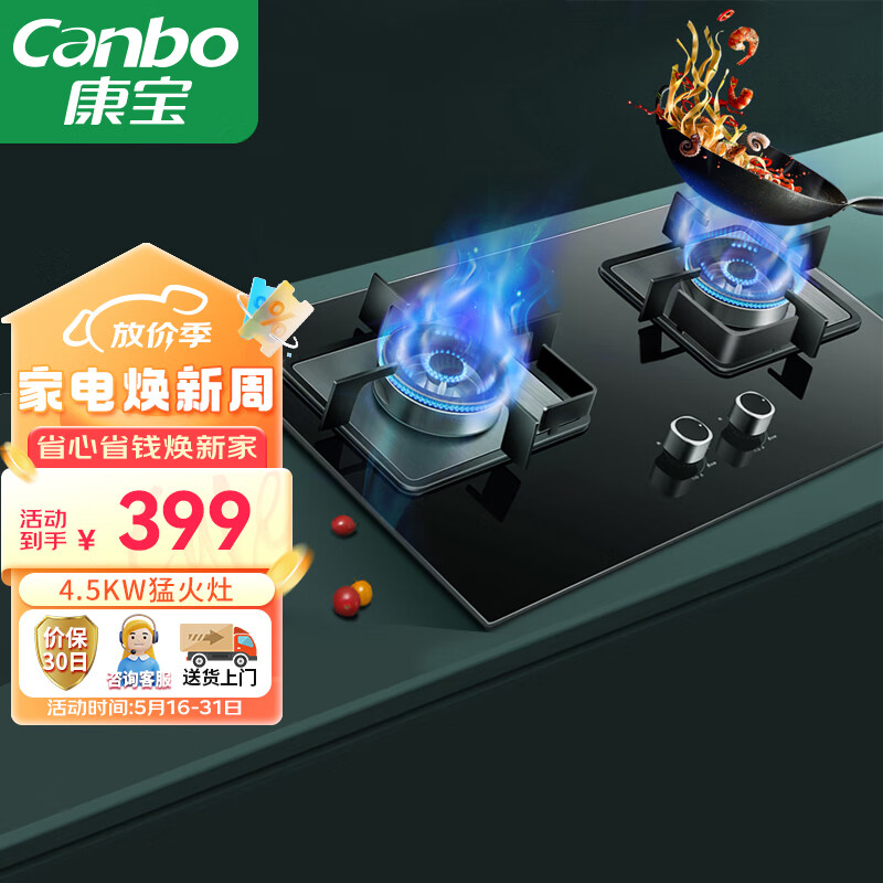 康宝(Canbo)燃气灶液化气双灶 炉具 嵌入式家用灶台 4.5大火力猛火灶具 JZY-2QB323价格:529.00元!