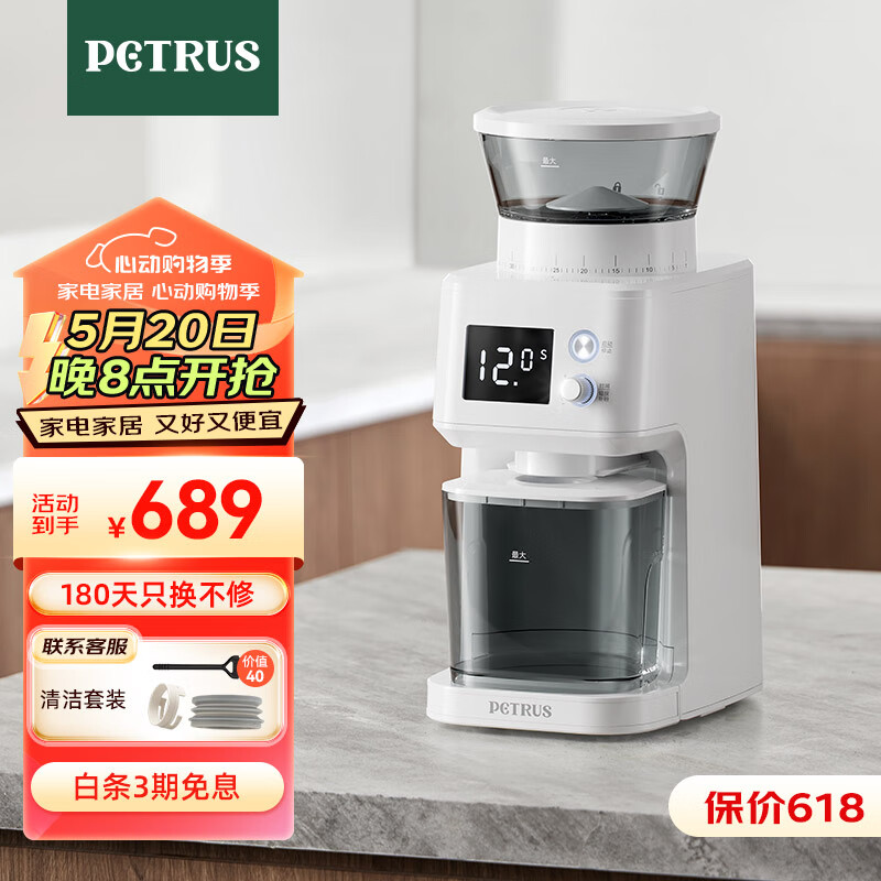 柏翠(petrus)磨豆机研磨机电动全自动咖啡豆家用小型意式磨粉机PE3755S价格:739.00元!