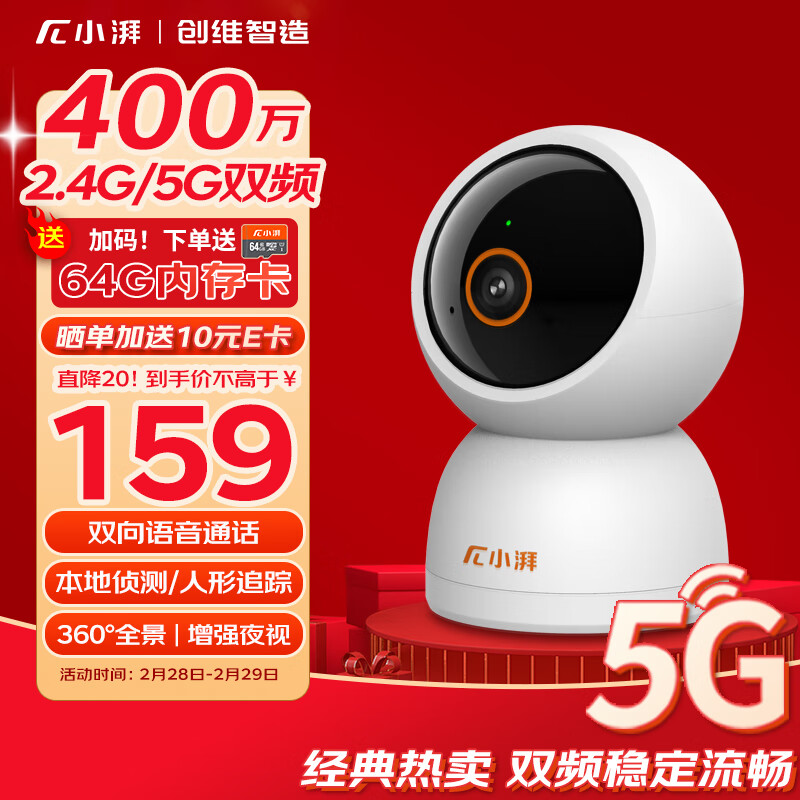 小湃400万双频摄像头家用监控P40Pro 家庭室内监控器360度无死角带夜视全景 手机远程监控看护器监护器价格:179.00元!
