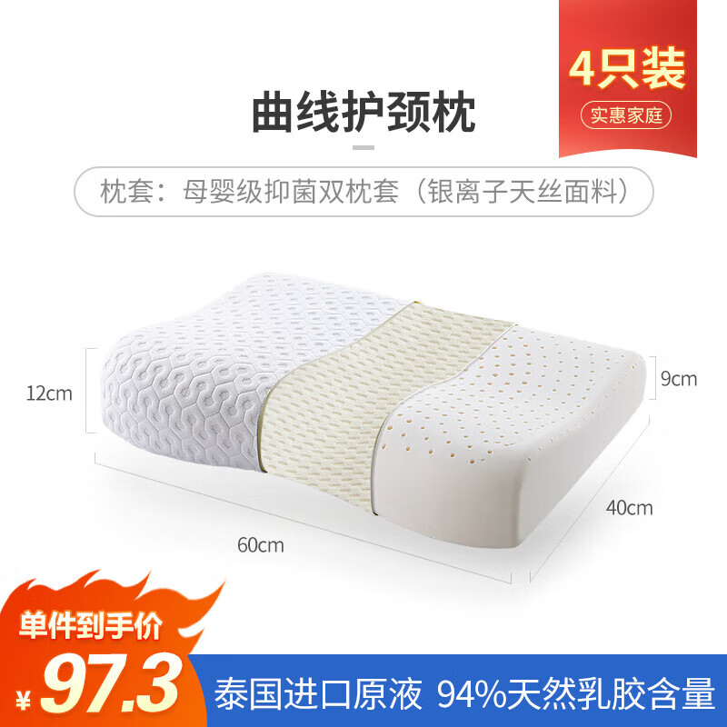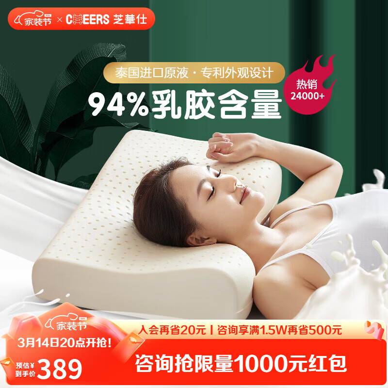 芝华仕(CHEERS)乳胶枕头人体工学天然橡胶枕成人枕芯 曲线护颈枕&4价格:389.00元!