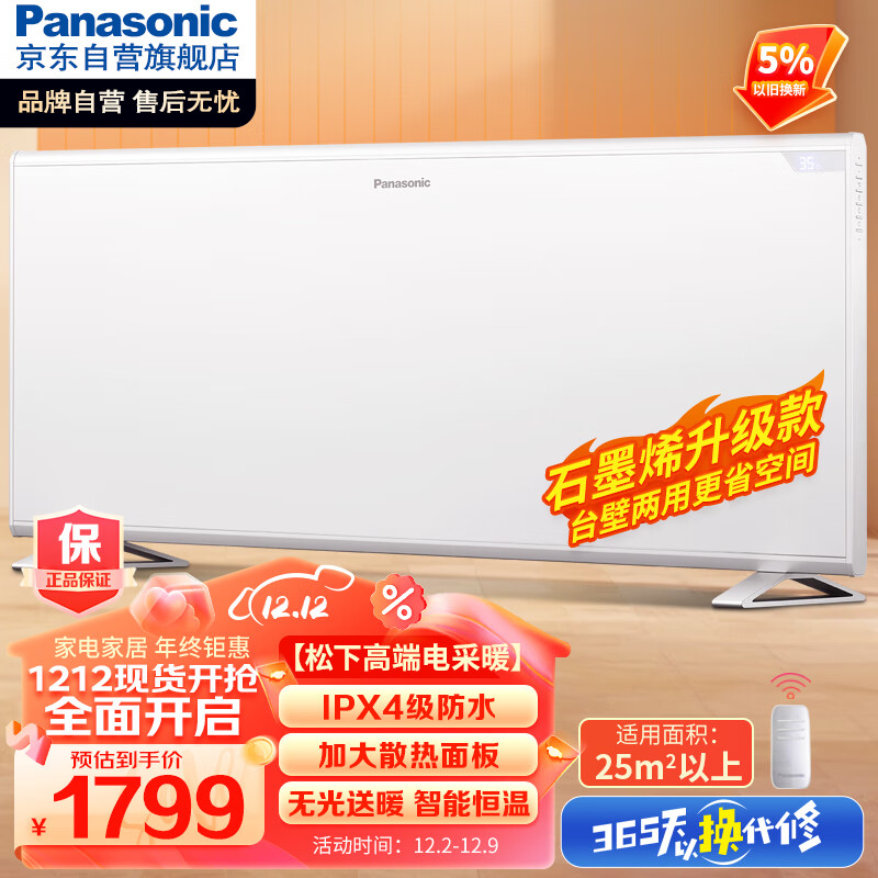 松下(Panasonic)取暖器石墨烯家用欧式快热炉电暖器无光低噪速热电采暖浴室防水壁挂电暖气片 DS-AT2021CW价格:2199.00元!