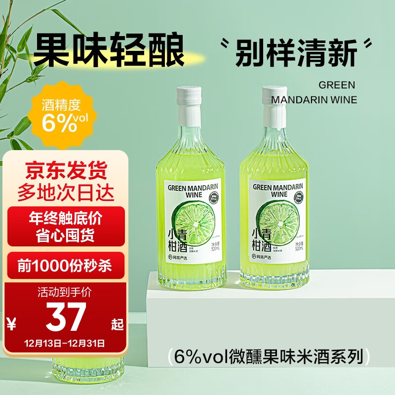 网易严选 小青柑果味酒520ml 低度微醺甜酒纪念日礼物夏日饮料价格:37.00元!