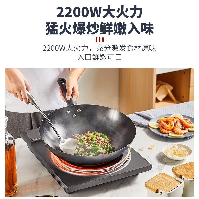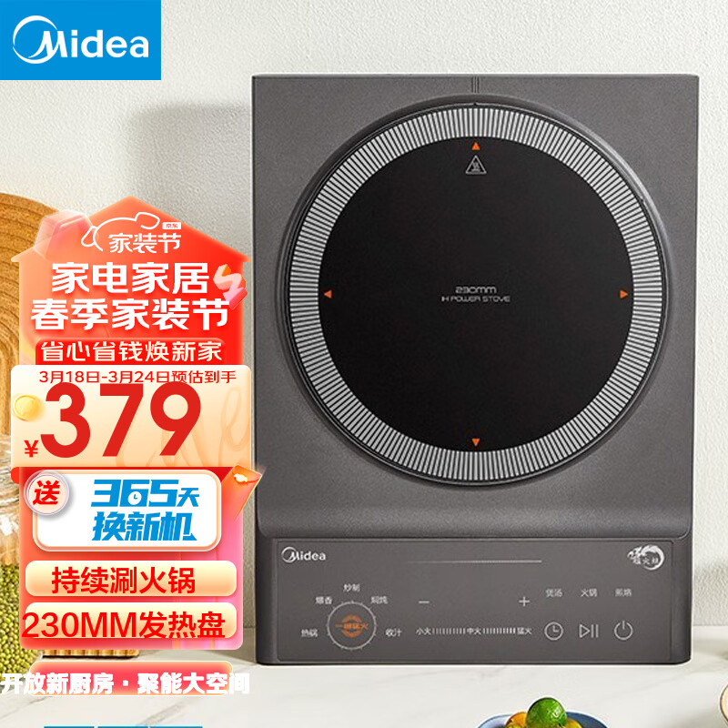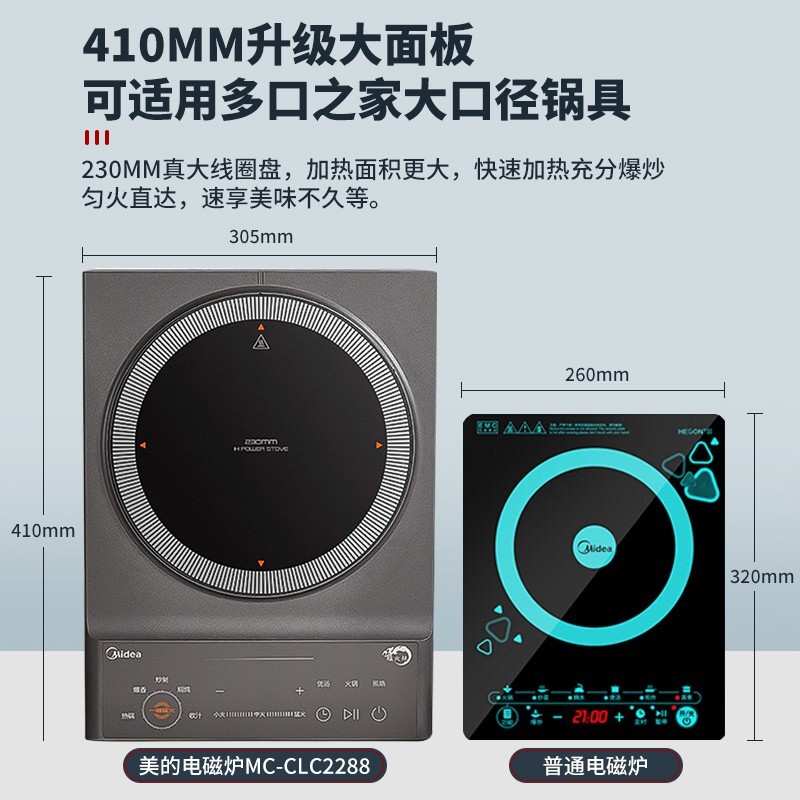 美的(Midea) 电磁炉家用商用大功率多功能智能预约定时恒匀火一体大火力电磁灶 24小时持续恒温火 【猛火爆炒】230MM大面板/大线圈 一键猛火价格:519.00元!
