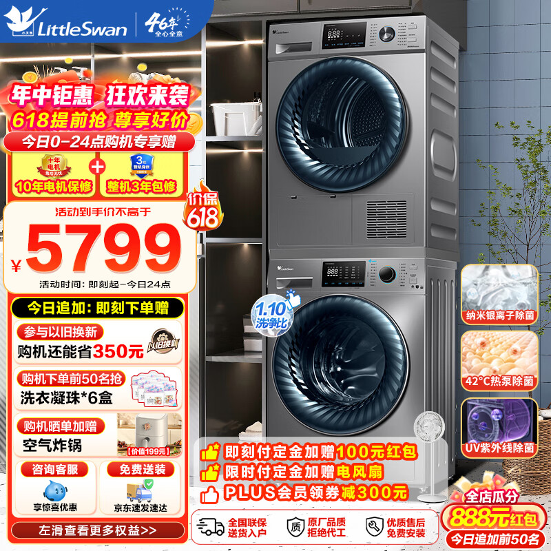 小天鹅(LittleSwan)小天鹅水魔方洗烘套装 10KG全自动变频家用洗衣机 护衣除菌烘干机 烘被子防缠绕 868+868价格:5899.00元!