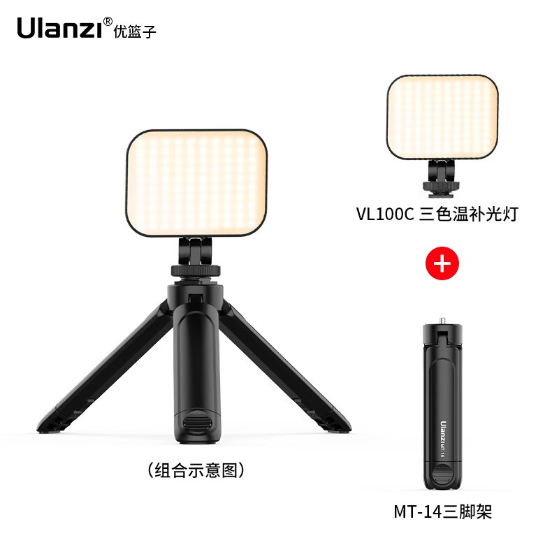 ulanzi 优篮子 VL100C+MT-14(套装)双色温迷你led补光灯直播柔光灯无极调光摄影灯手机相机通用美颜自拍灯价格:157.00元!