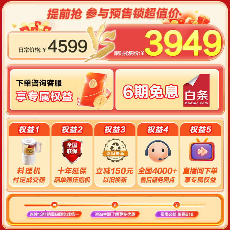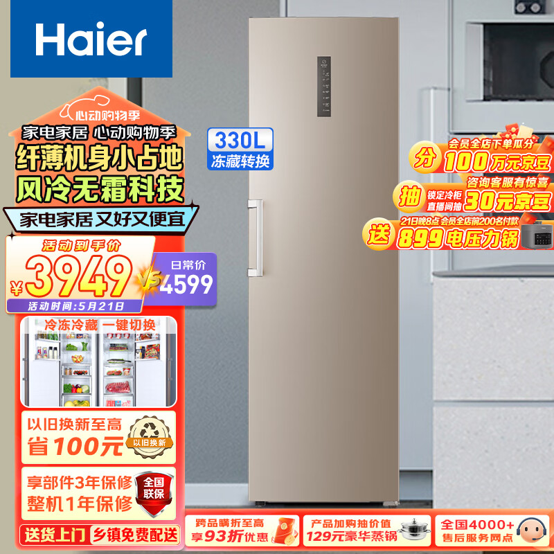 海尔(Haier)330升全冷冻小冰箱风冷无霜大容量家用冷藏冷冻立式冰柜海鲜速冻囤货BD-330WEPTU1以旧换新价格:4349.00元!