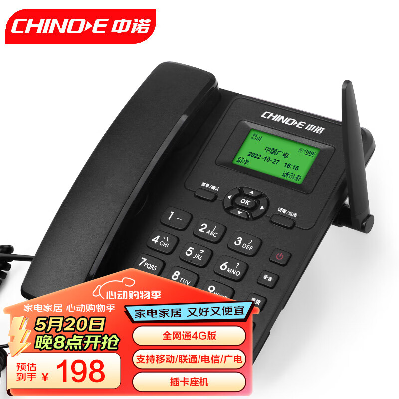 中诺w399通4G网支持4g5g卡广电电信移动联通兼容2g3g卡无线插卡电话机座机坐机卡固话黑色价格:198.00元!