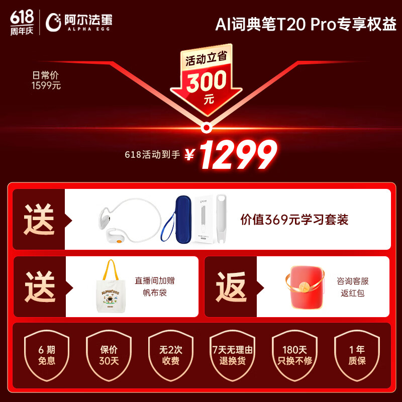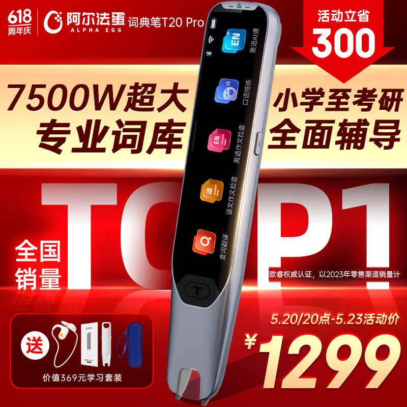 阿尔法蛋AI词典笔T20 Pro 至臻版 英语点读笔翻译笔全科学习笔神器 电子词典扫描笔单词笔学习机翻译机价格:1299.00元!