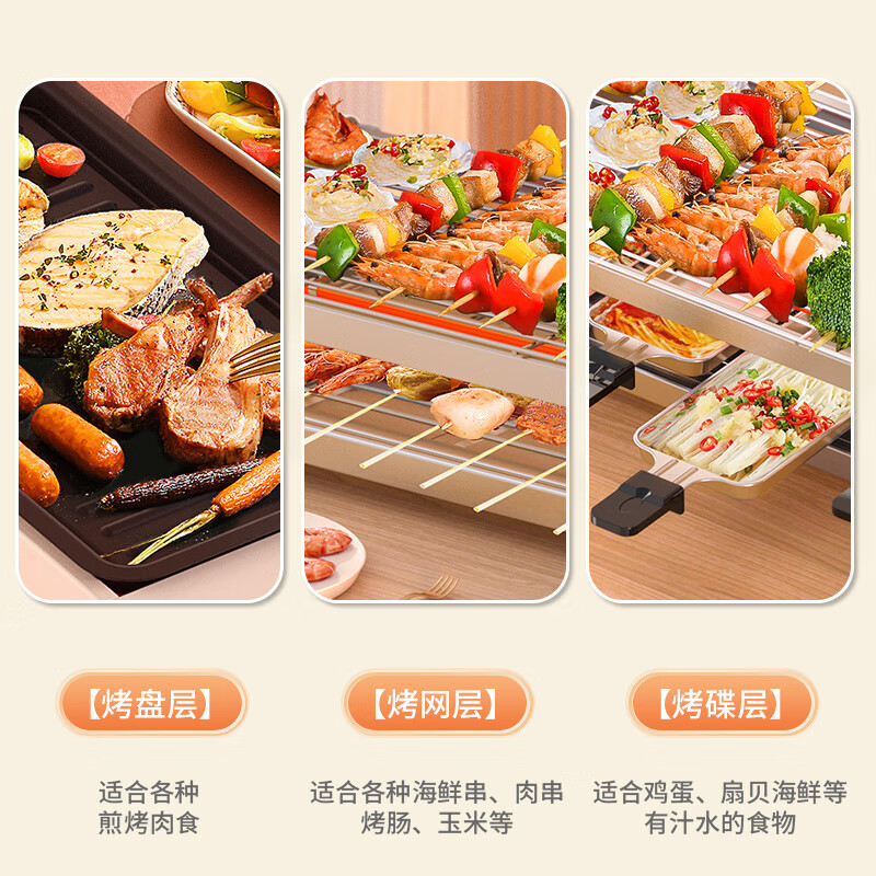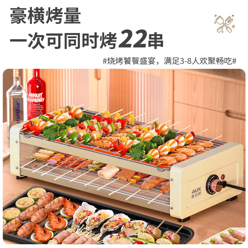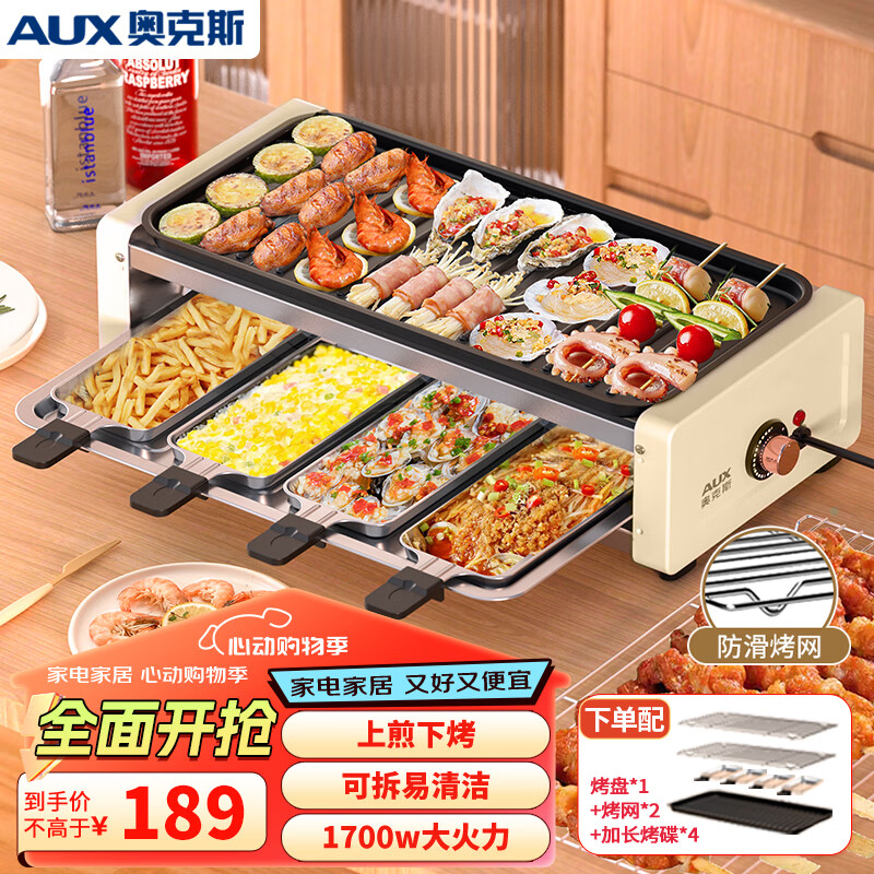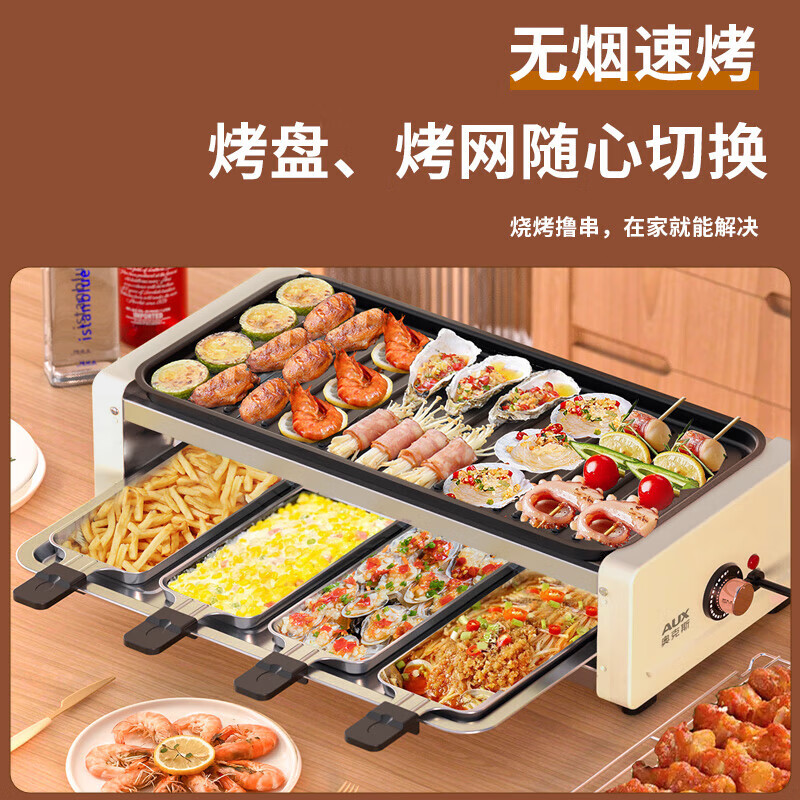 奥克斯(AUX)电烧烤炉 电烤盘家用无烟电烤架烧烤架烤肉机电烤炉烤肉锅烤串机 大号加深 烤网烤盘+4加长芝士盘价格:189.00元!
