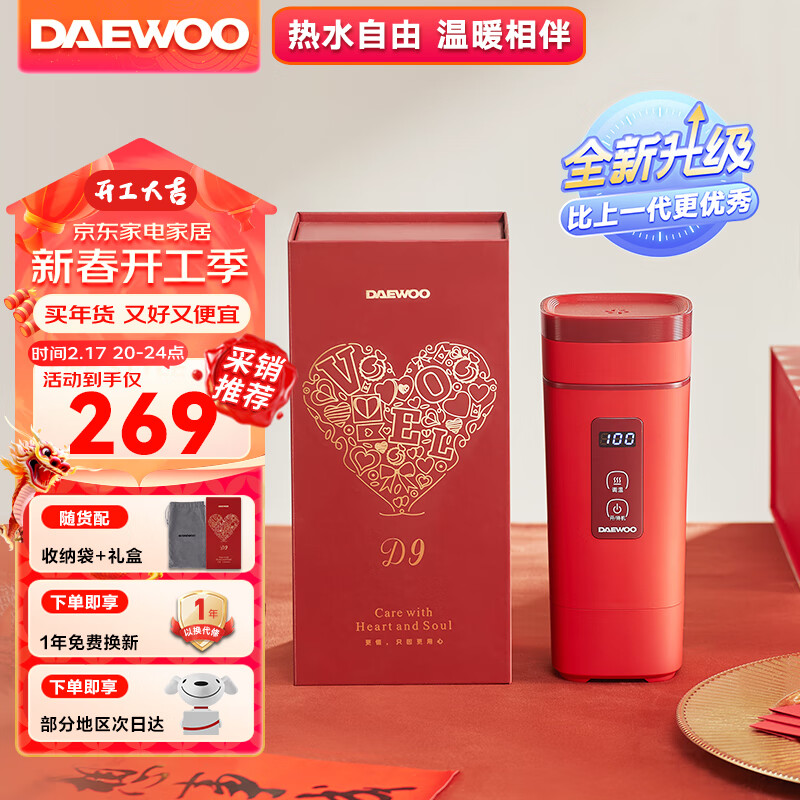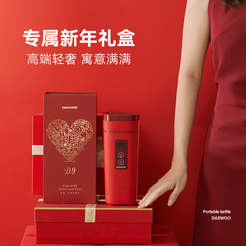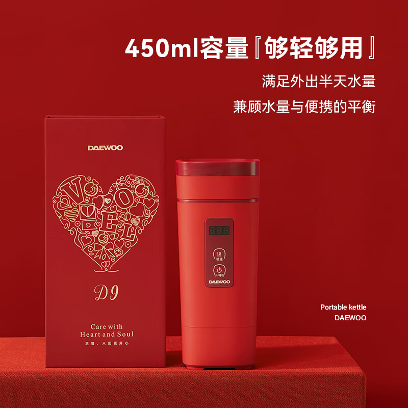 大宇(DAEWOO)便携式烧水壶 电热加热水杯 旅行电热水壶旅游电水壶保温杯恒温水壶婴儿年货送礼316不锈钢D9红色价格:299.00元!