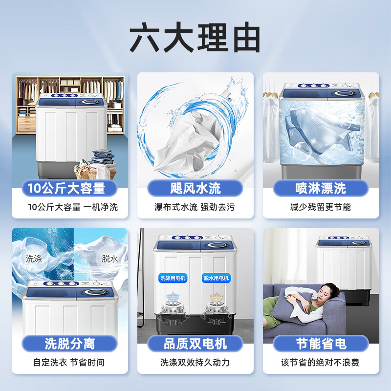 荣事达(Royalstar)洗衣机 10公斤双筒家用双缸半自动双桶洗衣机大容量甩干机 以旧换新 白色 RP10030J价格:499.00元!