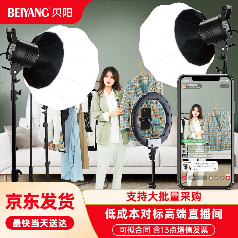 贝阳(beiyang)500WT直播补光灯LED柔光灯专业直播间灯光设备套装视频拍摄打光灯摄像拍照柔光球形美颜常亮灯价格:756.00元!
