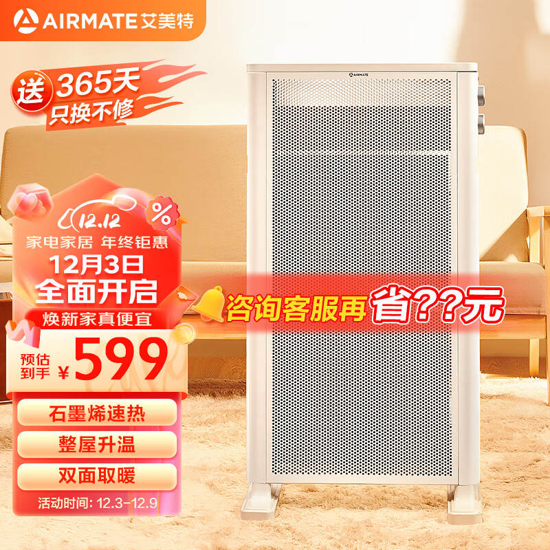 艾美特(AIRMATE)石墨烯取暖器/电暖器/电暖气片/暖风机/家用/办公室 浴室防水双面制热电热烤火欧式快热炉WL20-X1价格:699.00元!