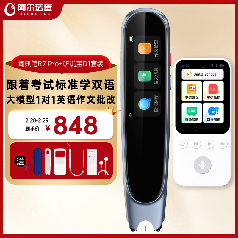 阿尔法蛋AI词典笔R7Pro+听说宝套装 英语点读笔神器 翻译笔离线扫描 双语学习笔单词笔电子词典学习机价格:848.00元!