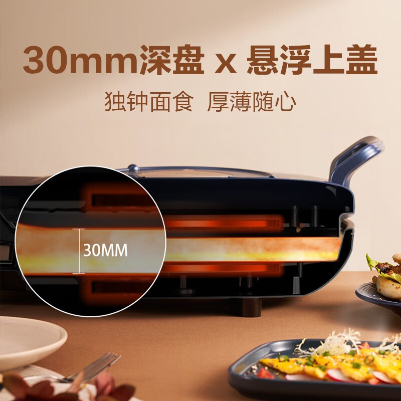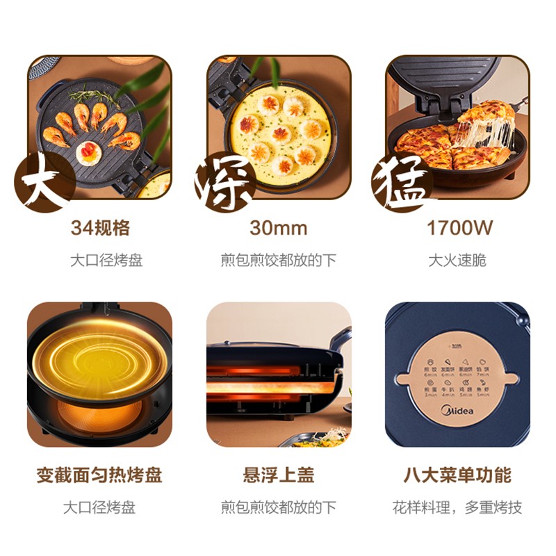 美的(Midea)电饼铛家用加大加深双面加热煎烤机烙饼机三明治早餐机烤盘34cm大尺寸煎饼烙饼锅电饼档 34X3-150价格:169.00元!