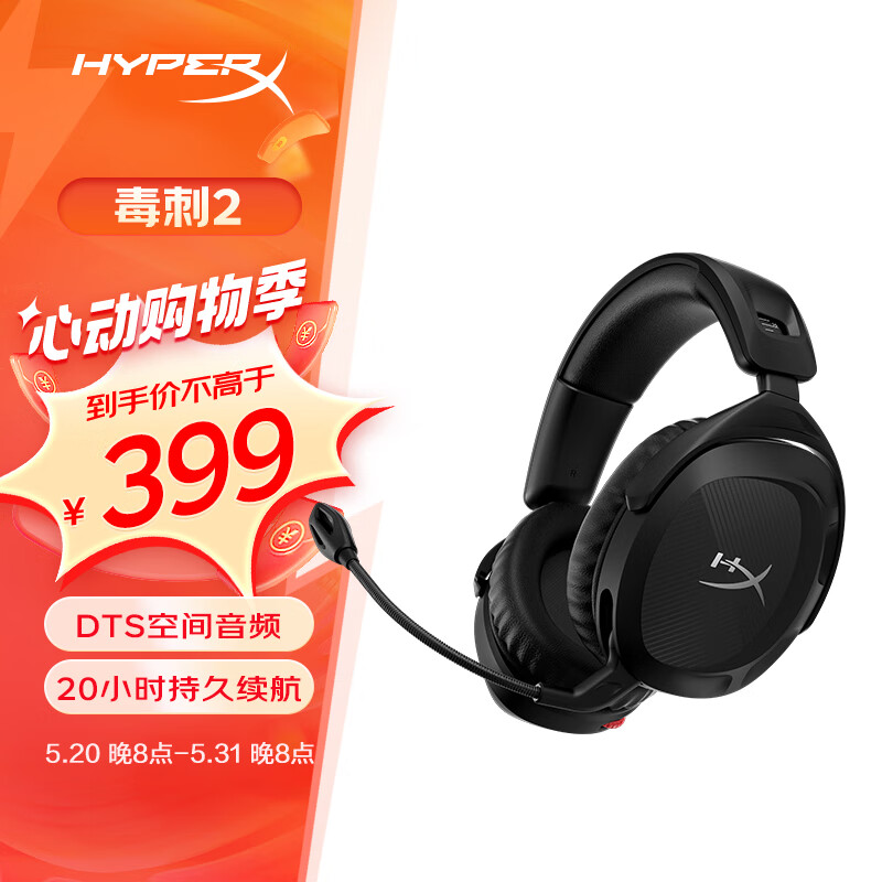 极度未知(HYPERX)Stinger2Wireless毒刺2 无线头戴式翻折耳罩DTS音效3.5mm电竞游戏耳机耳麦吃鸡csgo价格:429.00元!