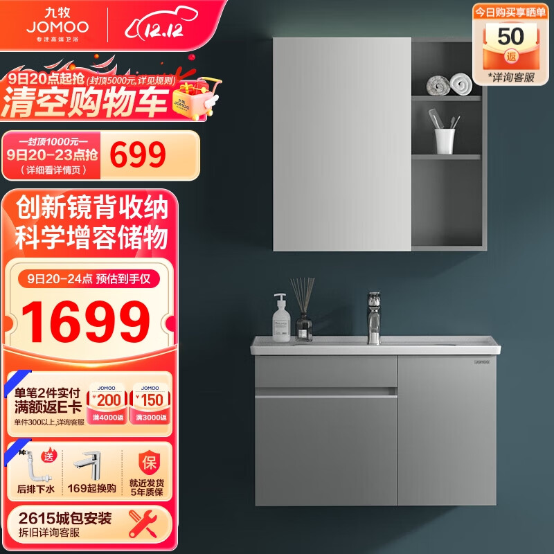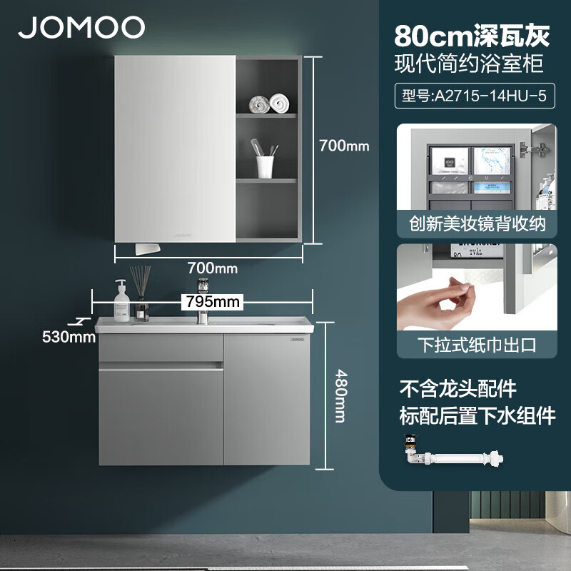 九牧(JOMOO)现代极简浴室柜陶瓷一体盆洗脸盆大收纳柜组合80cm A2715-14HU-5价格:2599.00元!