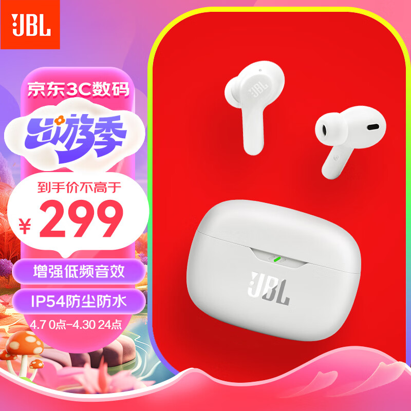JBL WAVE BEAM 真无线蓝牙音乐耳机 入耳式通话降噪 环境感知运动防水防尘通用苹果安卓手机 象牙白价格:329.00元!