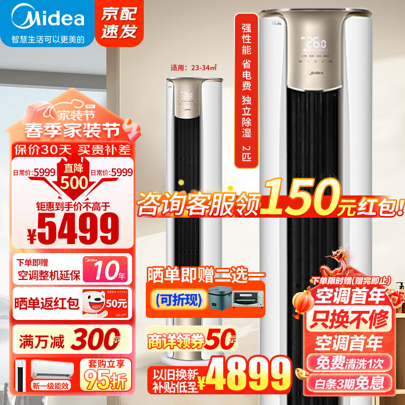 美的(Midea)空调 2匹 锐云2代 新一级能效 变频冷暖 除湿 空调立式 客厅空调柜机[KFR-51LW/N8XHA1Ⅱ]价格:5499.00元!