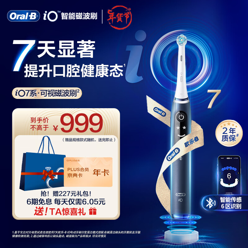 欧乐B成人电动牙刷成人 iO7智能刷 iO系列圆头磁波刷微震科技 深度清洁牙龈按摩 情侣生日礼物价格:999.00元!