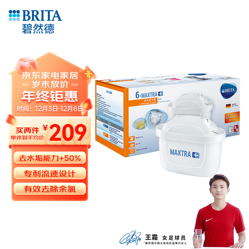碧然德(BRITA)家用净水壶 滤水壶滤芯 MAXTRA+LE 去水垢专家滤芯 6枚装价格:278.00元!