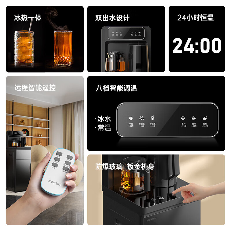 魔凡(MORFUN)即热式茶吧机饮水机家用高端客厅用制冷+制热+可调温智能全自动上水下置式桶装水办公室烧水一体机 MF816D(灰色) 冷热型价格:499.00元!