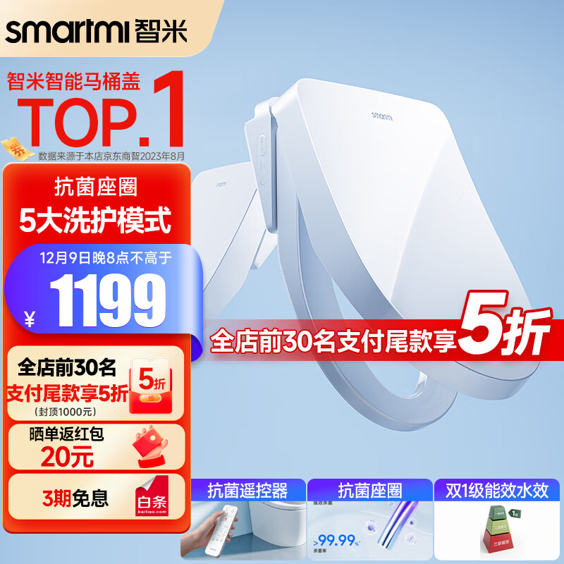 智米智能马桶盖加热坐便器盖清洗洁身器抗菌暖风烘干包安装2S价格:1259.00元!