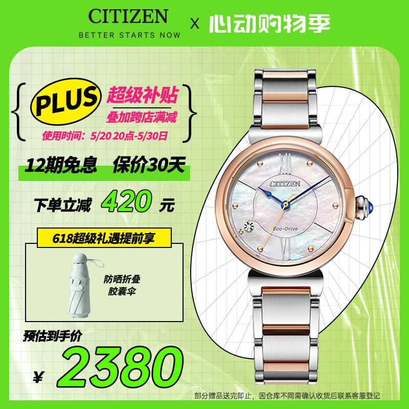 西铁城(CITIZEN)手表女日韩表光动能贝母表盘精致钢带时尚情人节礼物EM1074-82D价格:2800.00元!