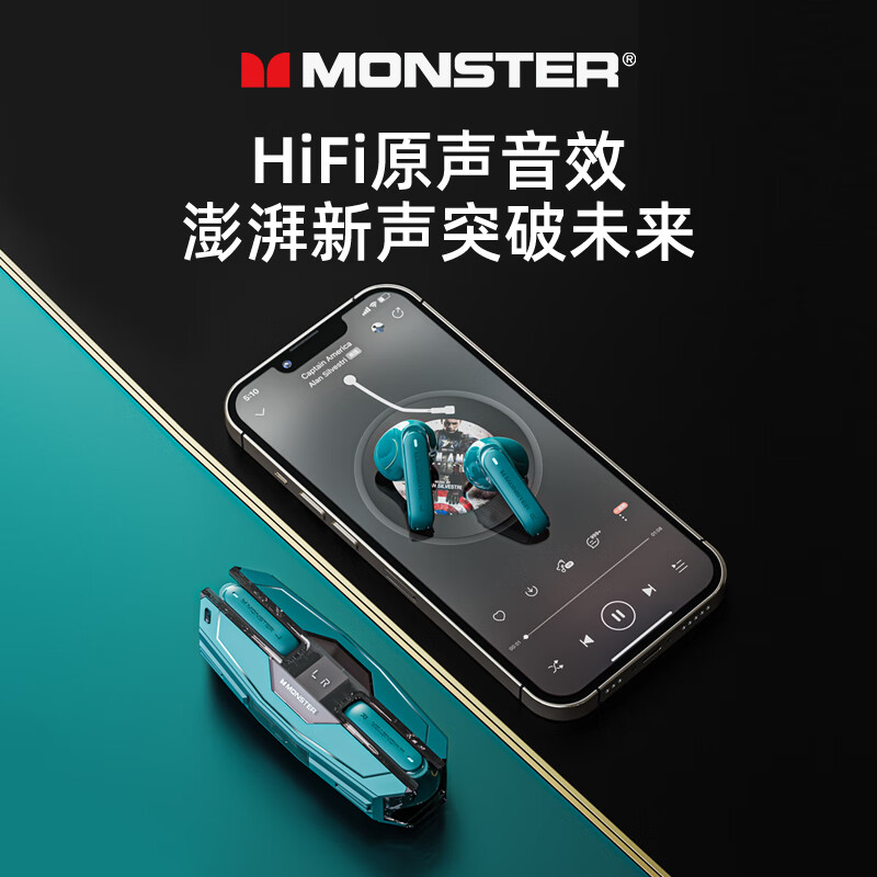 魔声(MONSTER)无线蓝牙耳机 【升级款】半入耳式游戏电竞降噪运动长续航音乐高音质 苹果华为通用 XKT08pro蓝色价格:199.00元!