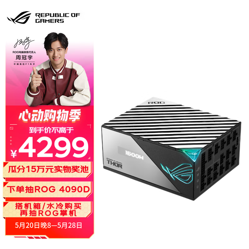 华硕(ASUS)ROG 雷神2代1600W电源 钛金认证/4090支持/PCIE5.0/神光同步/OLED屏/日系电容/氮化镓价格:4299.00元!