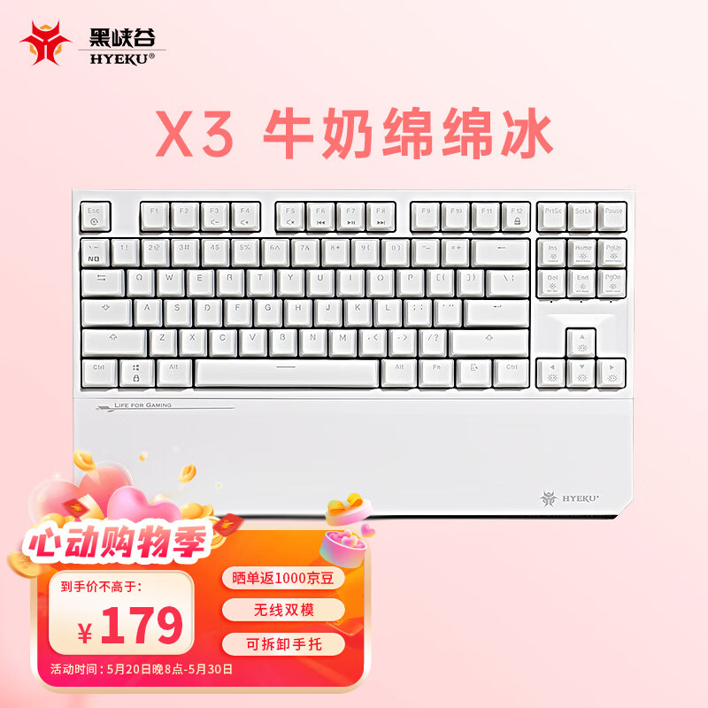 黑峡谷(Hyeku)X3 87键有线/无线双模机械键盘游戏办公PBT键帽凯华BOX新轴附卡扣腕托 牛奶绵绵冰 玫瑰红轴价格:199.00元!