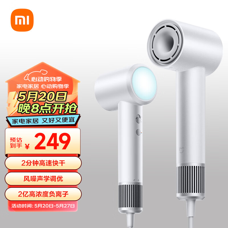 米家高速吹风机H501 小米官旗店 温柔小飓风 负离子护发 云漫白 礼物推荐价格:249.00元!
