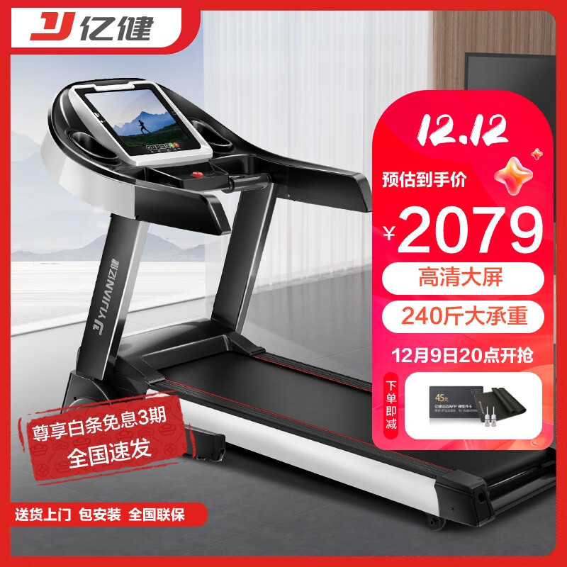 亿健(YIJIAN)跑步机家用JD618降噪可折叠减震可收纳10.1吋高清大屏价格:2299.00元!