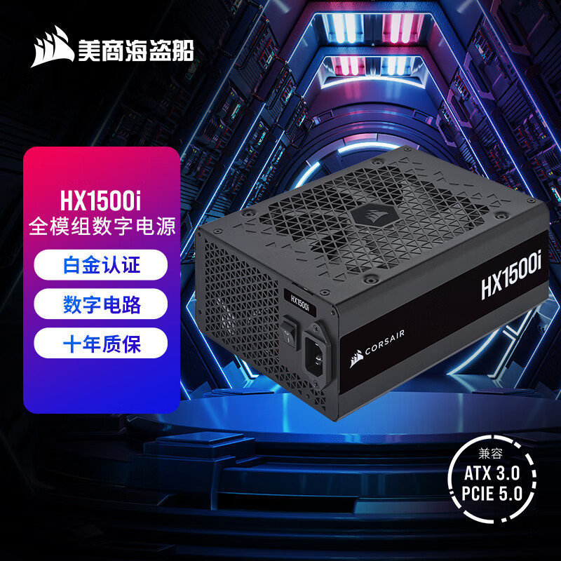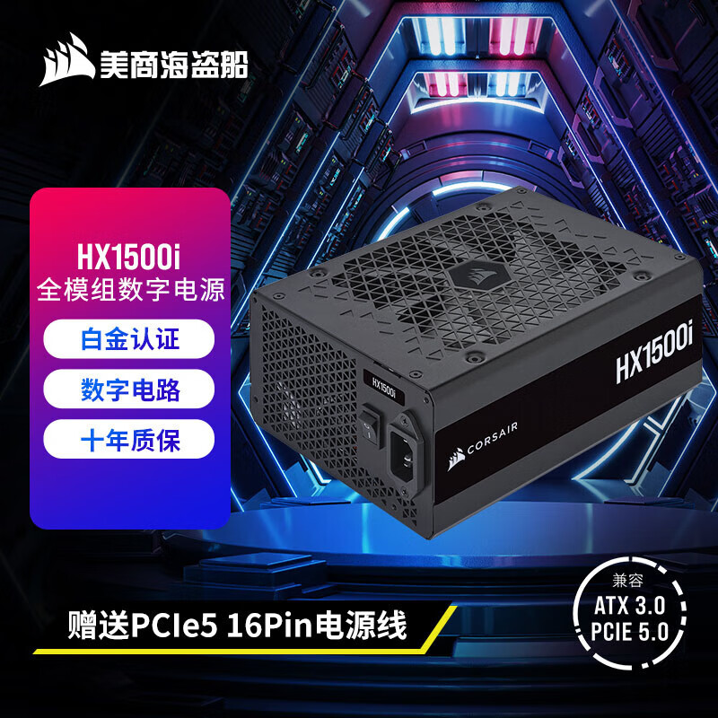 美商海盗船 (USCORSAIR) HX1500i 1500W电源 支持4090/Pcle5.0/白金认证/全模组/数字电路/智能唤醒价格:2929.00元!