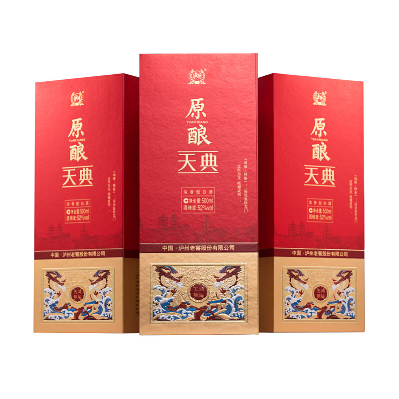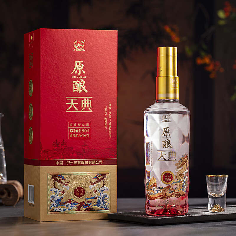 泸州老窖 原酿天典鸿运 52度 500ml 单瓶装 浓香型白酒 送礼聚会婚宴用酒价格:55.00元!