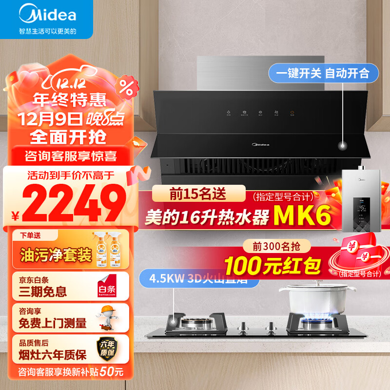 美的(Midea)烟灶套装 小尺寸抽油烟机侧吸式 家用双灶具 小户型油烟机燃气灶套装J27+Q217A液化气价格:2349.00元!