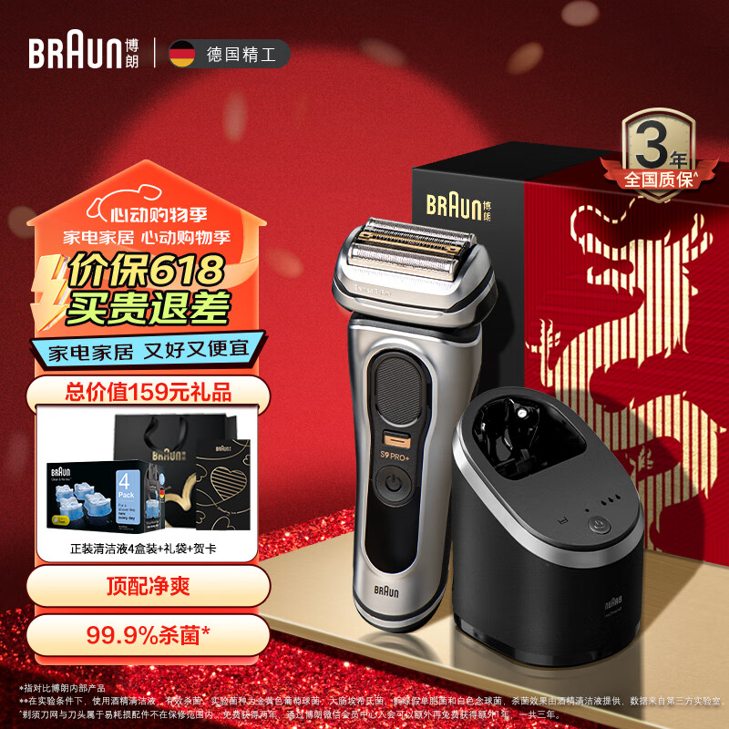 博朗(BRAUN)520礼物送男朋友9系pro+升级版清洁护理中心电动剃须刀整机德国进口往复式礼盒款送男友价格:2398.00元!