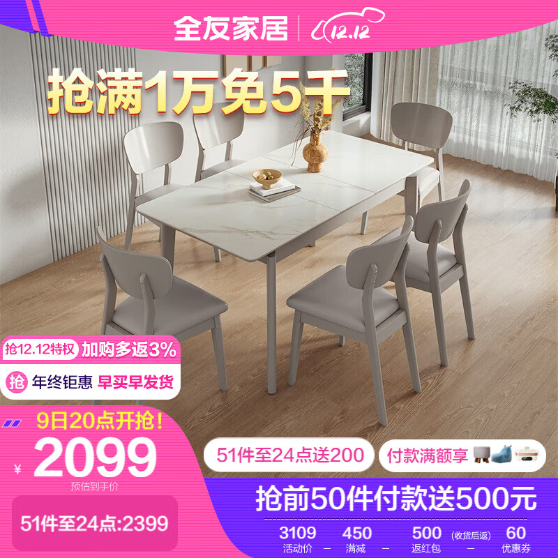 全友家居 餐桌现代简约岩板餐桌长短伸缩功能餐桌长方形桌子DW1120价格:3109.00元!