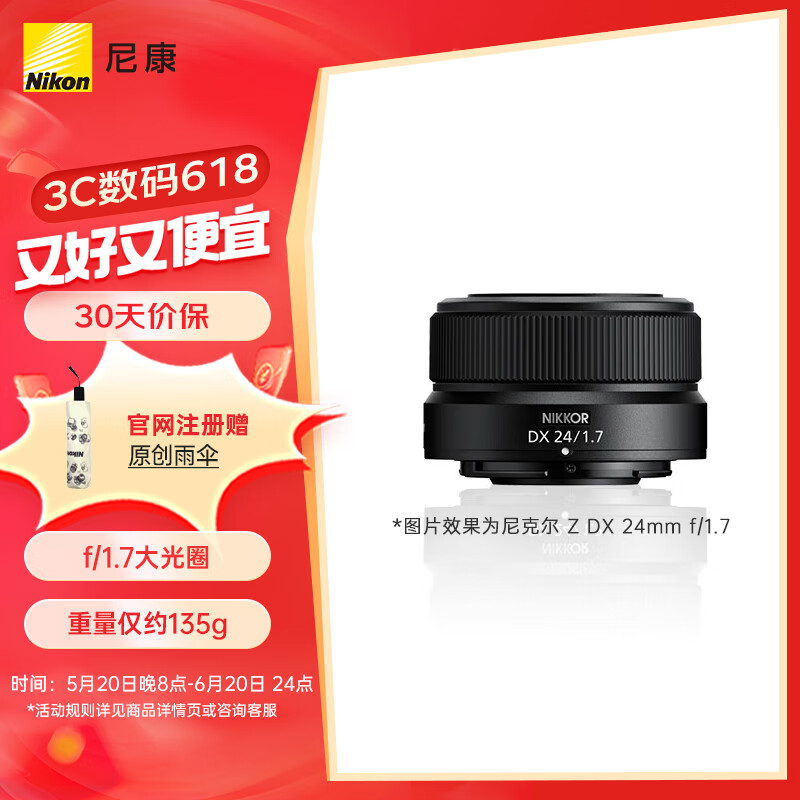 尼康(Nikon)尼克尔 Z DX 24mm f/1.7快速定焦镜头f/1.7光圈价格:1789.00元!