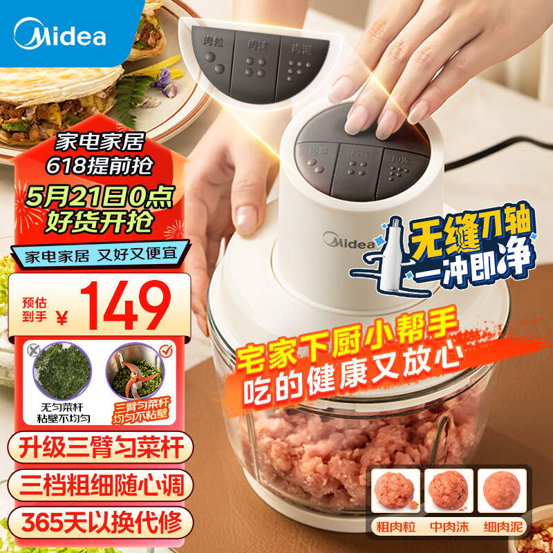 美的(Midea)绞肉机家用 料理机辅食机绞馅机家用碎肉机多功能大容量大功率搅拌机电动绞肉馅 【四档位】JCS01价格:149.00元!