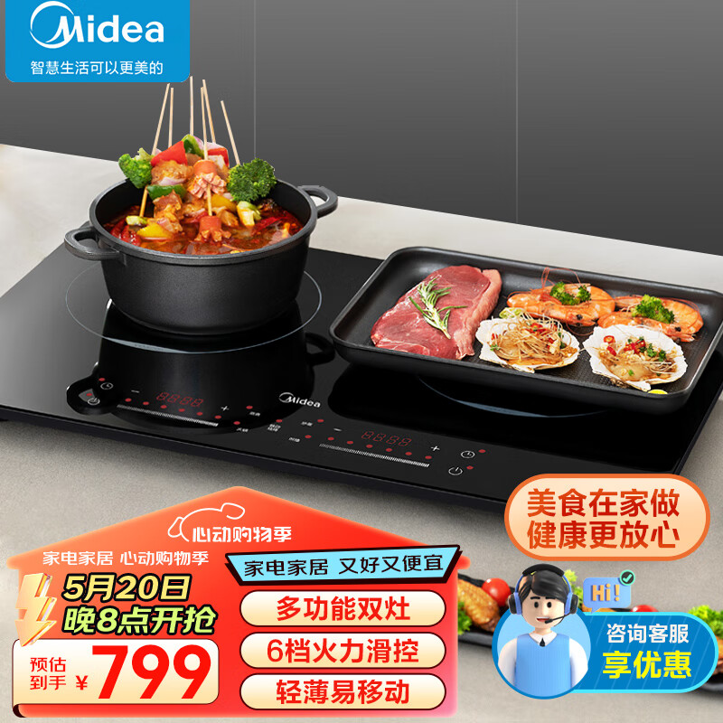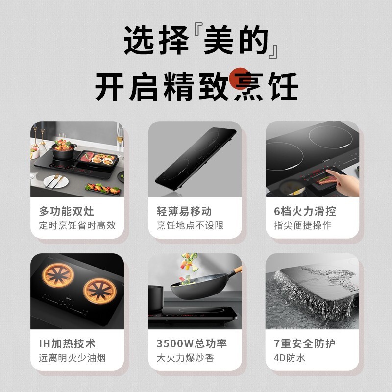 美的(Midea)双灶电磁炉 电磁灶 家用大功率3500W防护双头灶 轻薄机身 定时预约多功能MC-DZ35W5-111价格:799.00元!