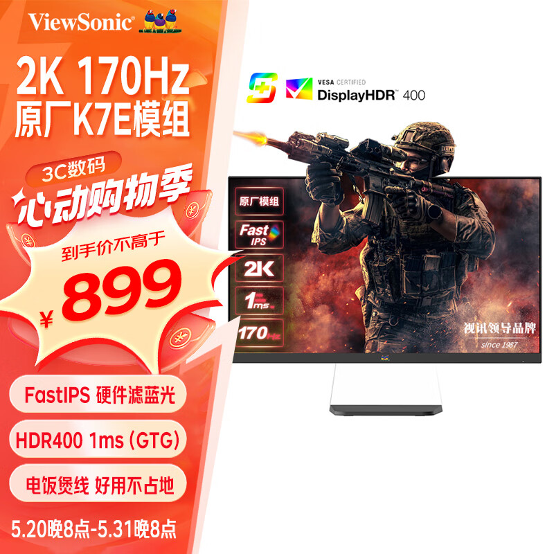 优派27英寸原厂背光 2K 170Hz FastIPS 1ms(GtG) HDR400 爱眼滤蓝光 猛擎悬浮电竞显示器VX2781价格:949.00元!