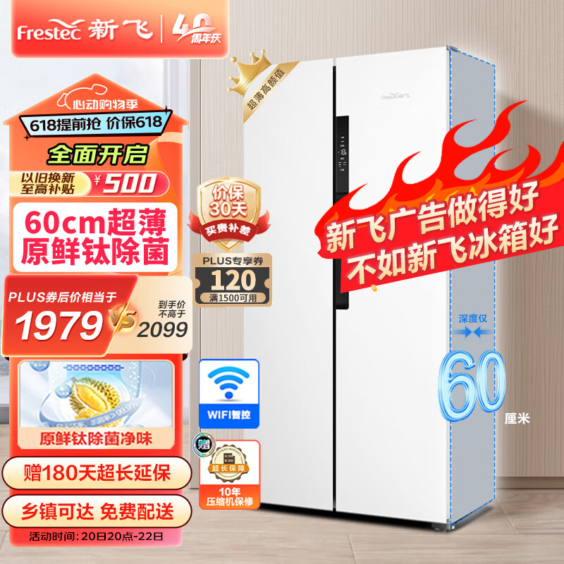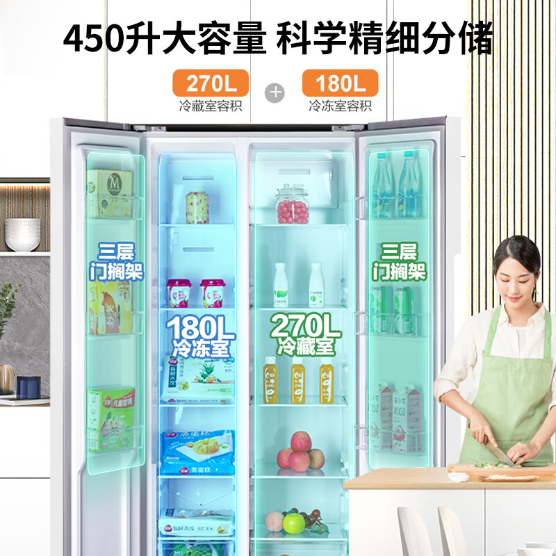 新飞(Frestec)60cm系列450升超薄对开门双开门冰箱多维风冷无霜家用除菌电冰箱 BCD-450WK9HT素雪白价格:2299.00元!