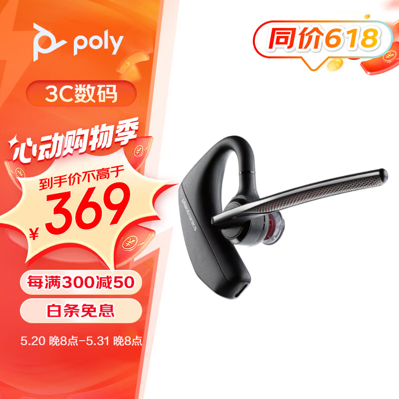 缤特力(PLANTRONICS)Voyager 5200单耳蓝牙耳机 智能降噪 商务车载 开车通话 远程办公 高清语音 来电语音播报 POTE16价格:419.00元!