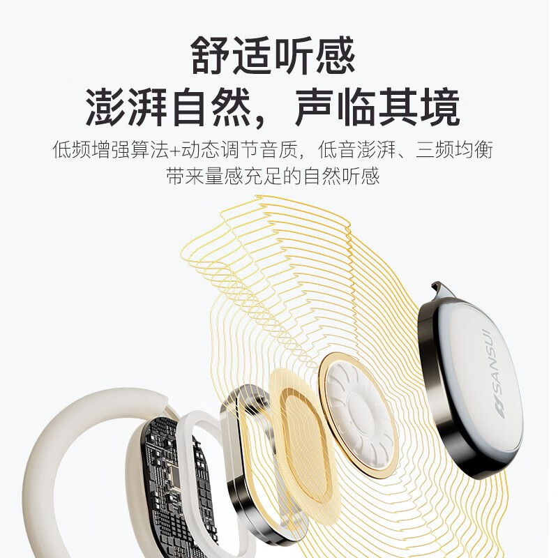 山水TW98【柏林之声】无线蓝牙耳机气骨传导概念夹耳式降噪耳机超长续航运动防水挂耳式游戏音乐耳机 暗夜黑价格:349.00元!