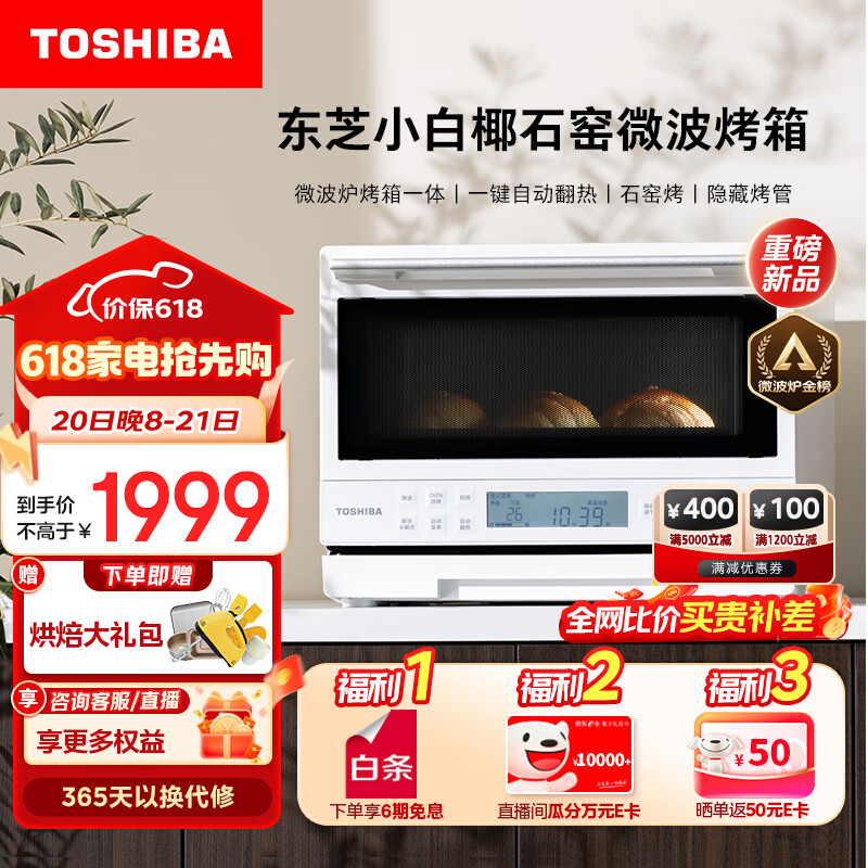 东芝(TOSHIBA)ER-YR2210CNW微烤一体机东芝小白椰微波炉石窑烤箱厨房小型家用多功能智能翻热隐藏烤管白色20L价格:1999.00元!